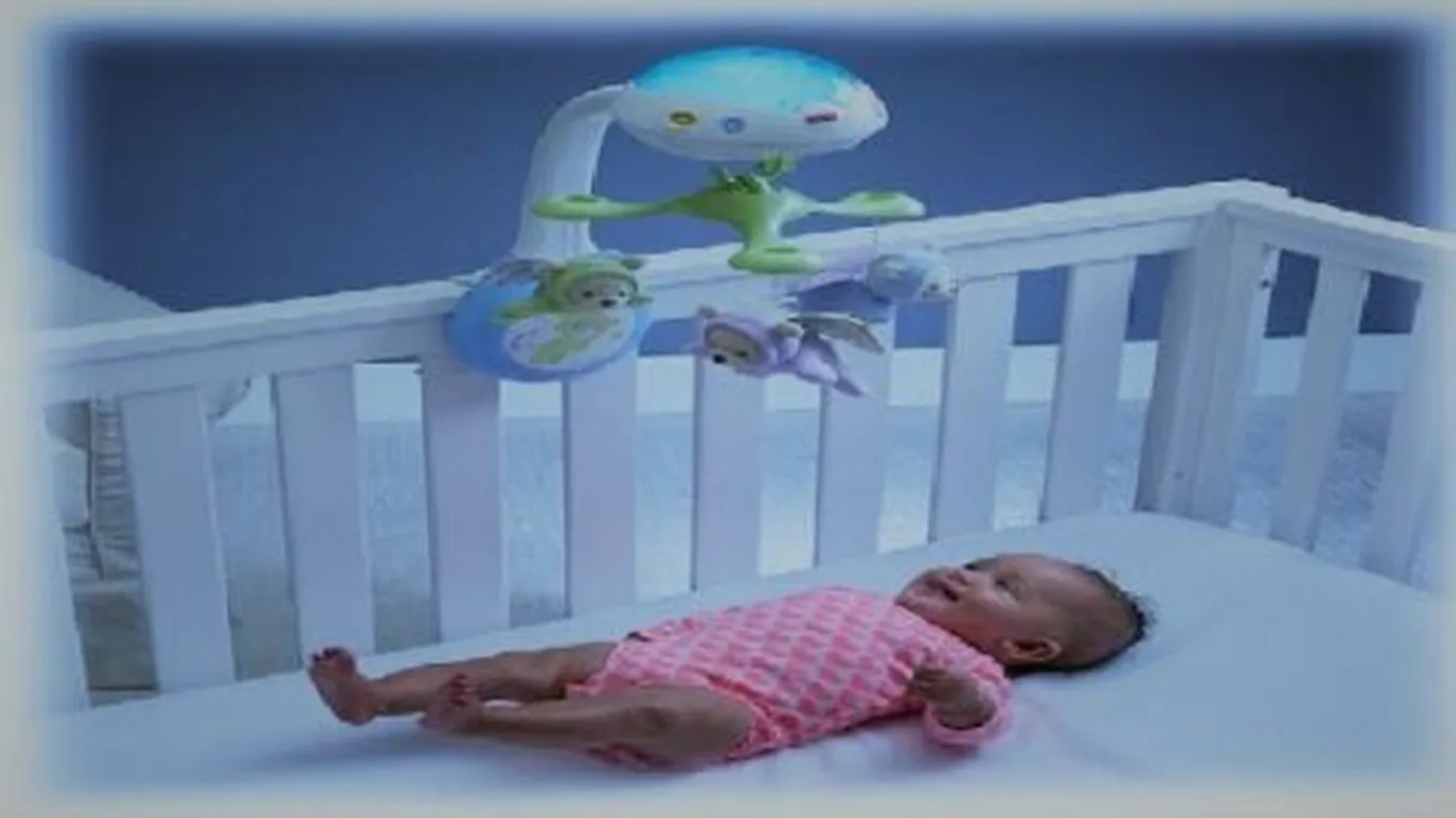 - يمكنكِ الاستعانة ببعض الأدوات لتهيئة أجواء النوم في غرفة الطفل ومساعدته على الاستسلام للنوم بسهولة، خاصّةً إذا أصبح طفلكِ بعمرٍ يحتاج فيه للهدوء ليلاً، ننصحكِ بتجربة لعبة Butterfly Dreams 3-in-1 Projection Mobile من fisher price التي ستعفيكِ من مهام كثيرة؛ فهي عبارة عن وحدة عرض ضوئي دوّارة، تعكس أضواء النجوم على السقف والجدران لتساعد على الاسترخاء، وتحتوي أيضاً على وحدة الصوت التي تصدر عنها 3 وضعيات صوتية مختلفة تشمل (موسيقى التهويدة، والأصوات الهادئة، وأصوات الطبيعة)، والتي يمكن فصلها أيضاً واستخدامها كوحدة صوت منفصلة على الطاولة. كما أنها مزودة بـ 3 دببة ناعمة تدور فوق رأس الطفل، ويُمكن فصلُها وتركيبُها على عربة الطفل. والأهم أنه يمكنك التحكّم بكل ذلك عن بعد عن طريق جهاز تحكّم خاص يُغنيكِ عن الاقتراب من الطفل وإزعاجه في كل مرةٍ ترغبين بإيقافها أو إعادة تشغيلها.[4]