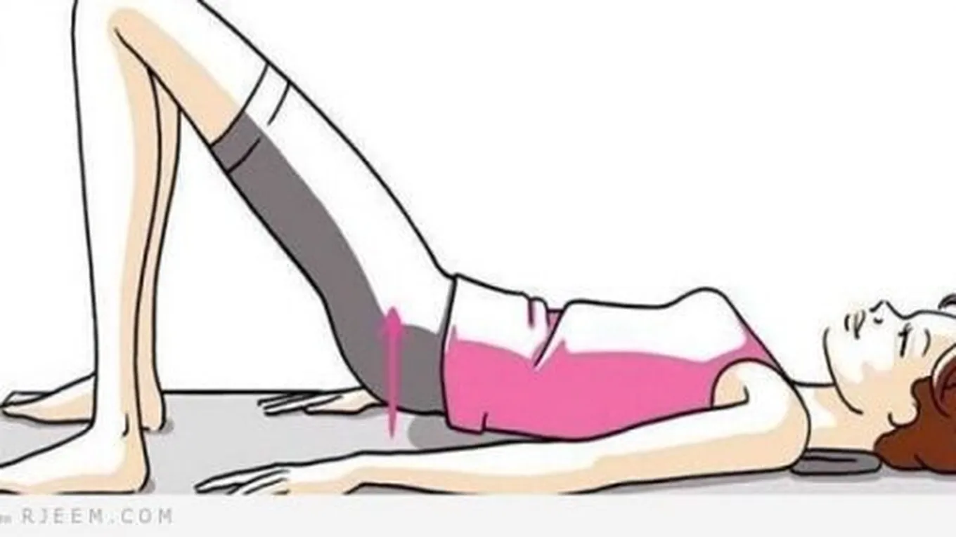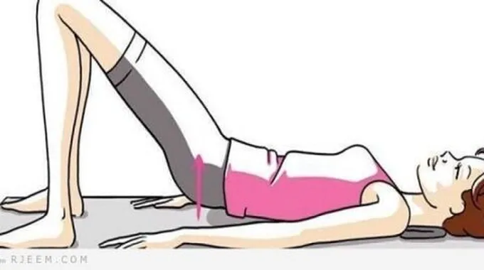- اضغطي الجزء العلوي من ظهرك على الأرض بشدة، وذلك خلال رفعك لردفيْك قليلاً.