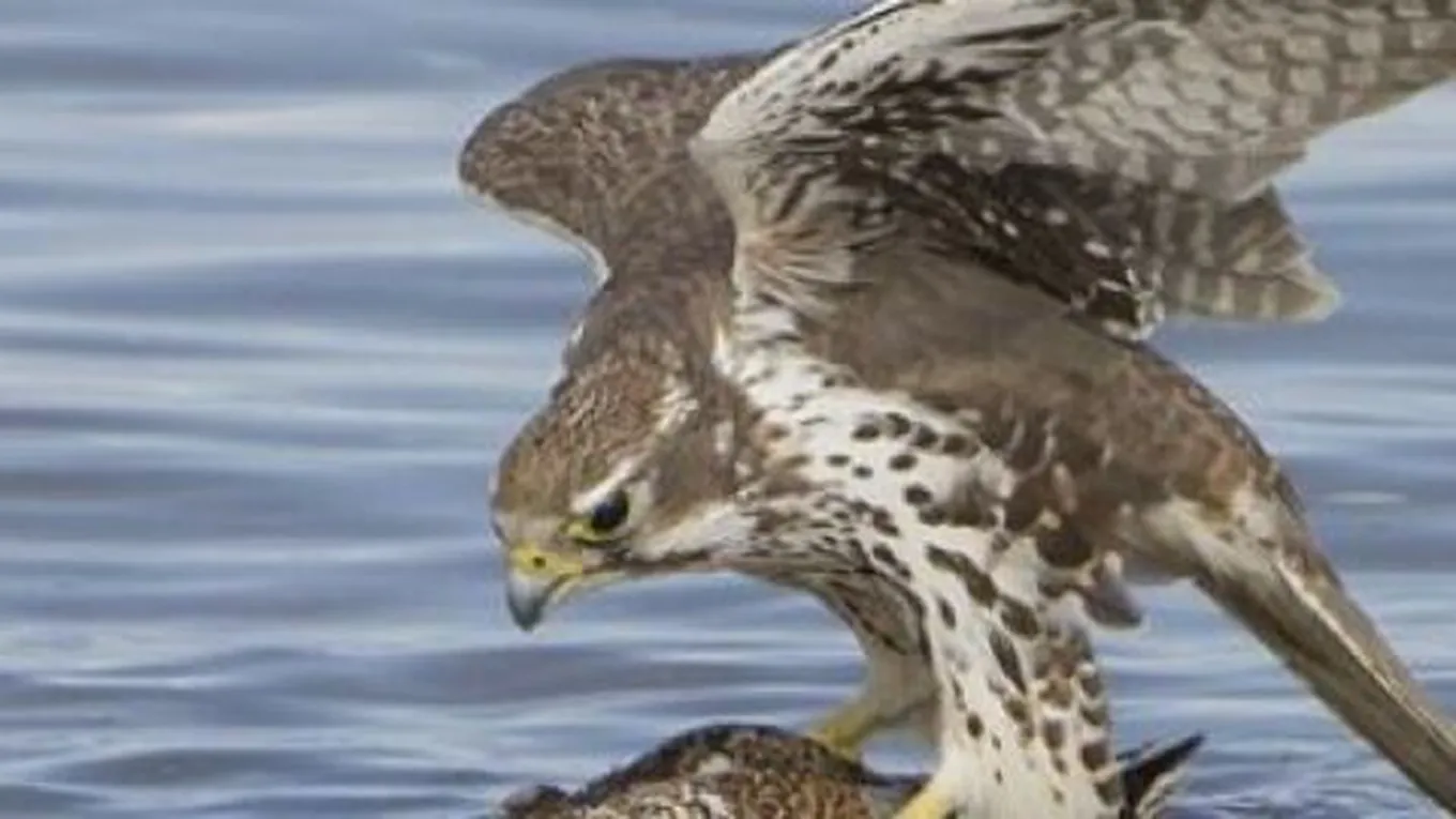 - صقور الشاهين: هي طيور كبيرة وقوية، رمادية اللون مع القليل من الألوان الفاتحة أو البني في الجانب العلوي.