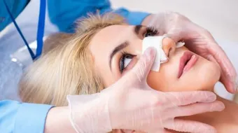 - خروج إفرازات دموية من الأنف: من المتوقع خروج إفرازات دموية بعد أي عملية جراحية يتم إجراؤها على الأنف، ولذلك عادة ما يثبت الطبيب ضمادة أو شاش على شكل شارب أسفل الأنف لمدة يوم أو يومين لحل هذه المشكلة.[6]