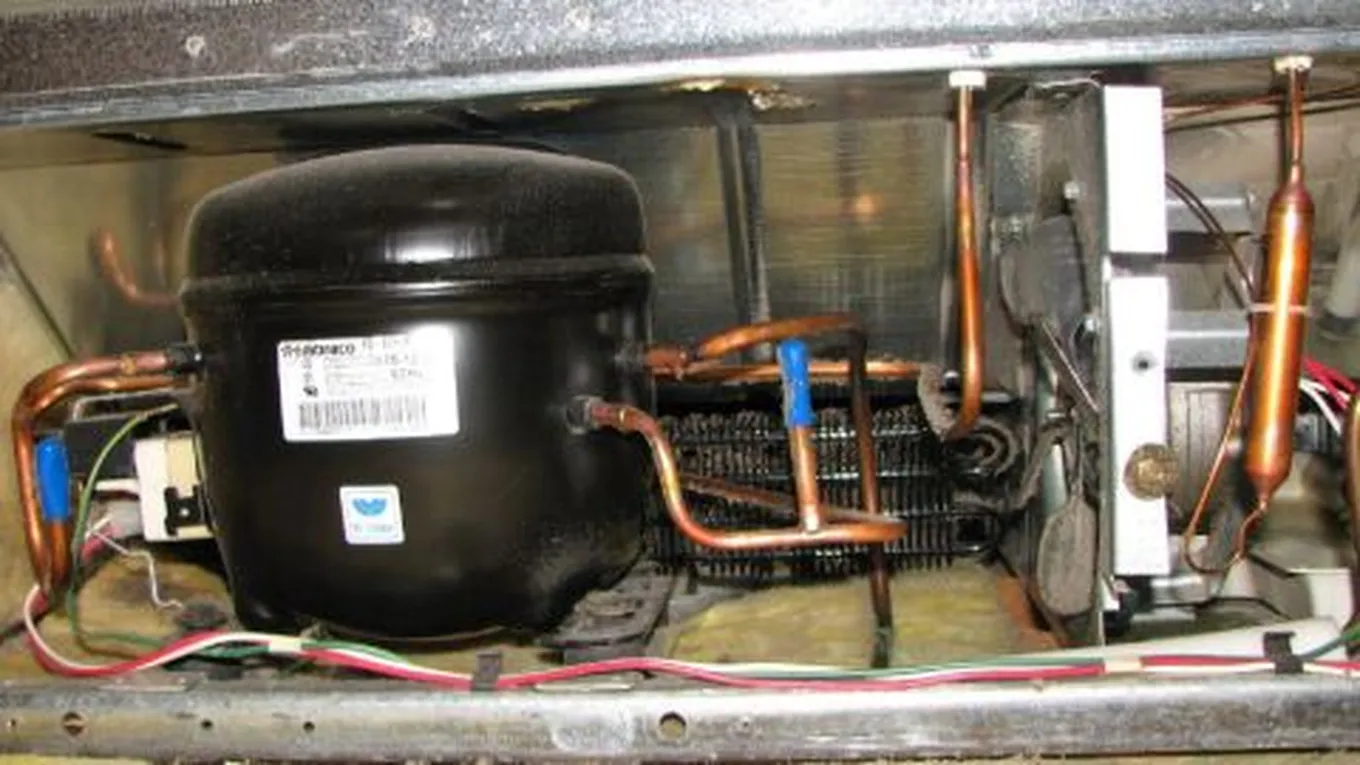 يكون ذلك مع استمرار عمل الضاغط، وانبعاث رائحة حرق: وينتج هذا العطل بسبب تآكل واحتكاك في المحرك، أو بسبب تلف في الكباستور، أو وجود شيء يعيق حركة مروحة المبخر، أو نتيجة ارتخاء المسمار الذي يثبت المروحة، وفي هذه الحالة يجب تحديد العطل أولاً، ثم علاجه كتغيير المحرك إذا كان تالفاً، أو تغيير الكباستور، أو إزالة ما يعيق حركة مروحة المبخر، أو ربط المسمار إن كان مفكوكاً.