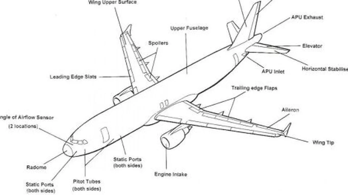 على الرغم من اختلاف أشكال الطائرات وتصاميمها إلا أنّها جميعاً تتشابه في الأجزاء الرئيسية المكوّنة لها، وهي كما يأتي:[1]