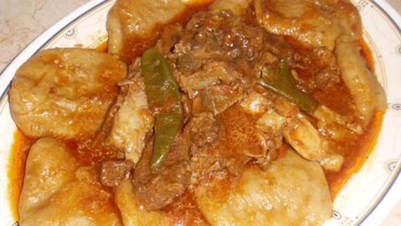 - نأخذ قطعةً من العجينة ونصنع حفرةً بوسطها بإبهام اليد، ثم نملؤها باللحم وبعدها نغمسها بمرق اللحم ثم نأكلها.