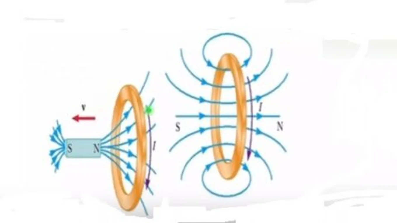 عند تقريب المغناطيس من الموصل الحلقي فإنّ التيار التأثيري اللحظي العكسي يتولد في الحلقة حتى يتم تحويل الحلقة إلى مغناطيس قطبه الشمالي إلى أسفل، مما يؤدي إلى تنافر القطبين بعضهما وخلق مقاومة حركة لتقريب المغناطيس من الحلقة، ومن السهل علينا ملاحظة هذا الأمر عند سحب المغناطيس بالماوس وتقريبه إلى الحلقة مرة أخرى، مع العلم أنَّه بمجرد إبعاد المغناطيس عن الحلقة سيتولد تيار تأثيري لحظي طردي يحول الحلقة إلى مغناطيس قطبه الجنوبي إلى أسفل حتى تعمل قوة التجاذب بين القطبين المختلفين على مقاومة حركة القطب المؤثر بفعالية وكفاءة.