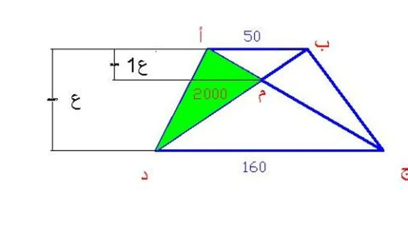 مثال (3): أوجد طول القاعدة الصغرى لشبه منحرف قائم الزاوية مساحته تساوي 3000سم2، وطول قاعدته الكبرى يساوي 80سم، وطول ضلعه العمودي على القاعدة يساوي 0.5م؟