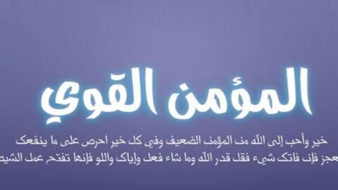 رُوَي عن أبي هريرة -رضي الله عنه- عن النبي -صلى الله عليه وسلم- قال: (الْمُؤْمِنُ القَوِيُّ، خَيْرٌ وَأَحَبُّ إلى اللهِ مِنَ المُؤْمِنِ الضَّعِيفِ)،[8] ويُراد بالقوة هنا العزيمة، والإقدام، والتحمل، والجلد في سبيل الله، والمبادرة على الخير،[9] ومن صفات المؤمن القوي:[10]