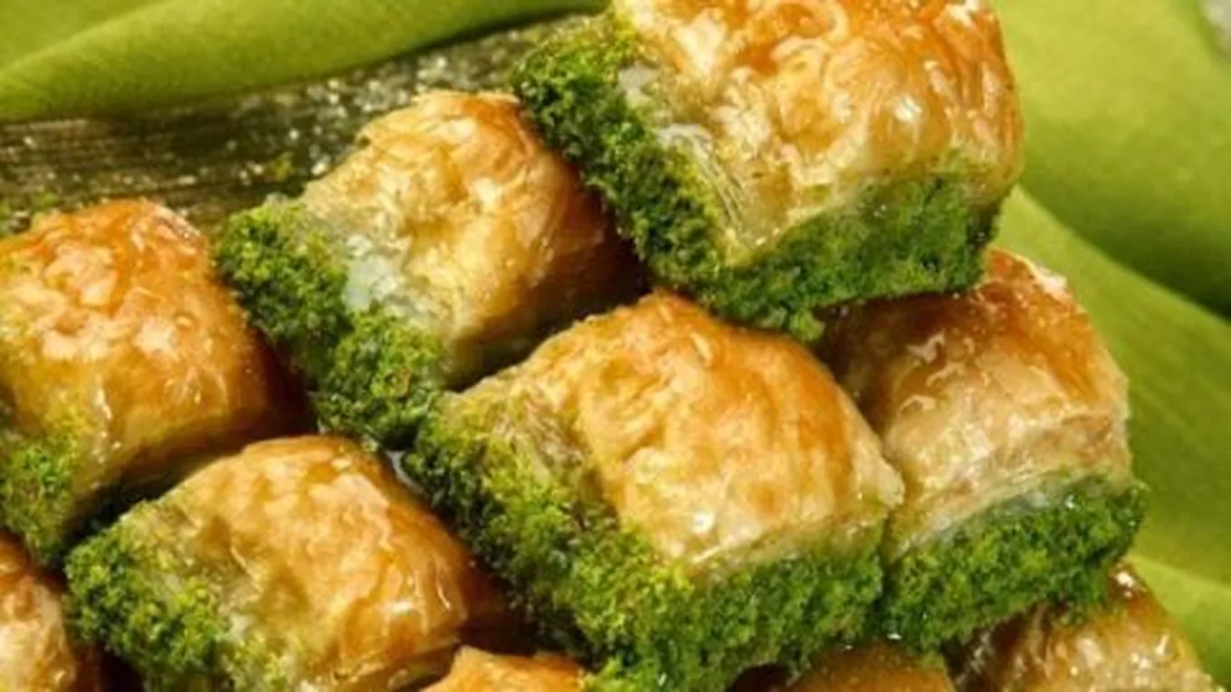 - نخرج الصينية من الفرن، ونضع عليها القطر البارد، ونزينها بالقليل من الفستق الحلبي.