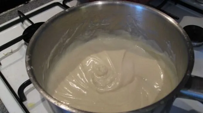 - نضع 5 كاسات من الحليب إما السائل أو حليب البودرة بعد تذويبه فوق لمزيج .