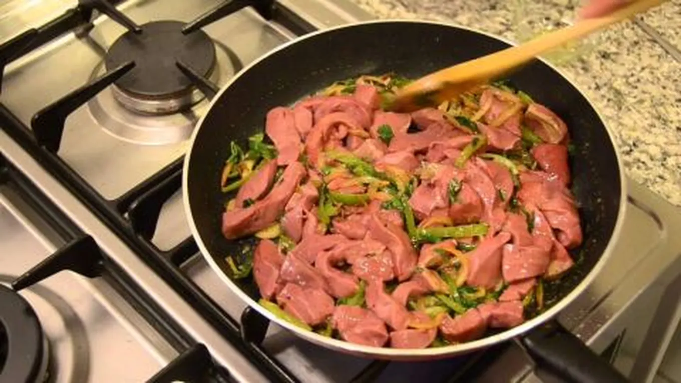 - إضافة كبدة الحاشي المقطّعة إلى مكعّبات إلى المقلاة وتقليبها جيداً، وذلك حتى يتغيّر لونها.