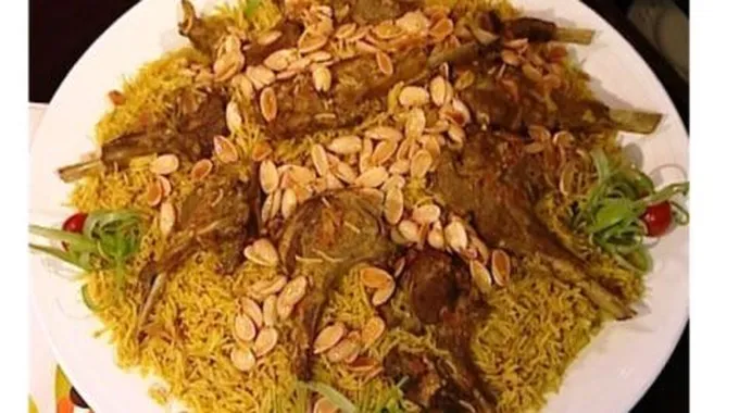 - نغسل الأرز جيّداً، ونطبخه في وعاء آخر، وقبل أن ينضج الأرز نضيف اللحم إلى جزءٍ منه، ونُذيب الزعفران بماء الورد، وماء الكادي، وملح الليمون ونضيفه إلى الأرز، ثم نضيف الربع الثاني من الأرز ونضيف كميّةً أخرى من الزعفران، ونضيف بقيّة الأرز باستخدام الطريقة نفسها حتّى تنتهي كامل كميّة الأرز.