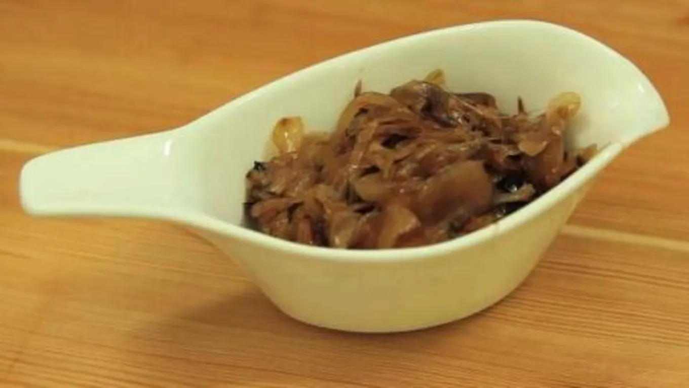 - أضيفي شرائح البصل المكرمل إلى الخليط، وقلبيه قليلاً.