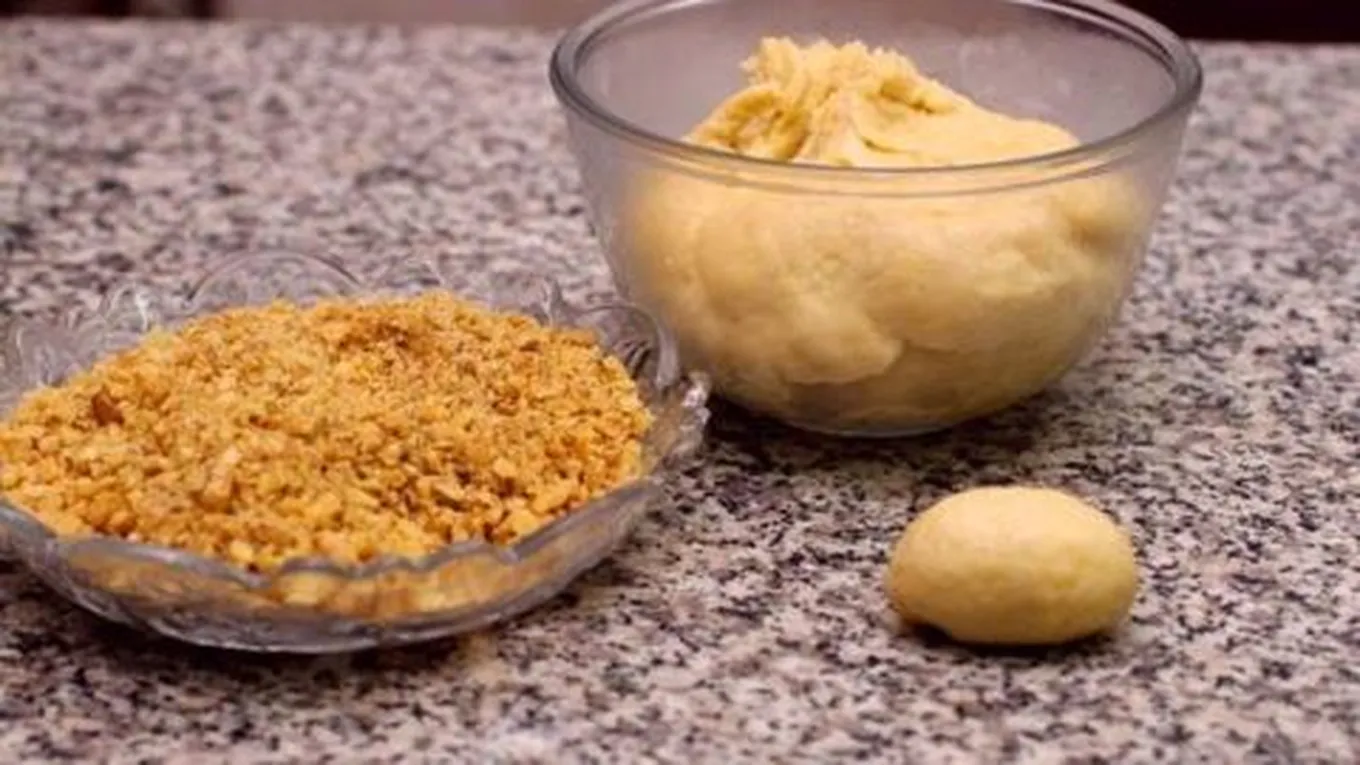 - اصنعي فجوة في كلّ كرة، ثم ضعي داخلها كمية مناسبة من الحشوة.