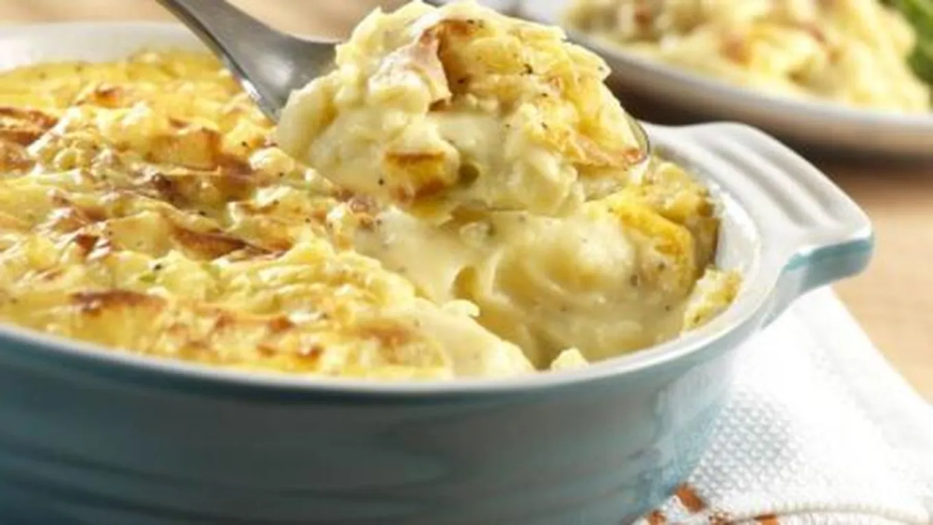 - بعد نضوج الطاجن تماماً، نُخرجه من الفرن، وننثر باقي الجبن على الوجه ونُحمّره من الأعلى فقط حتى تَذوب وتتحمّر.
