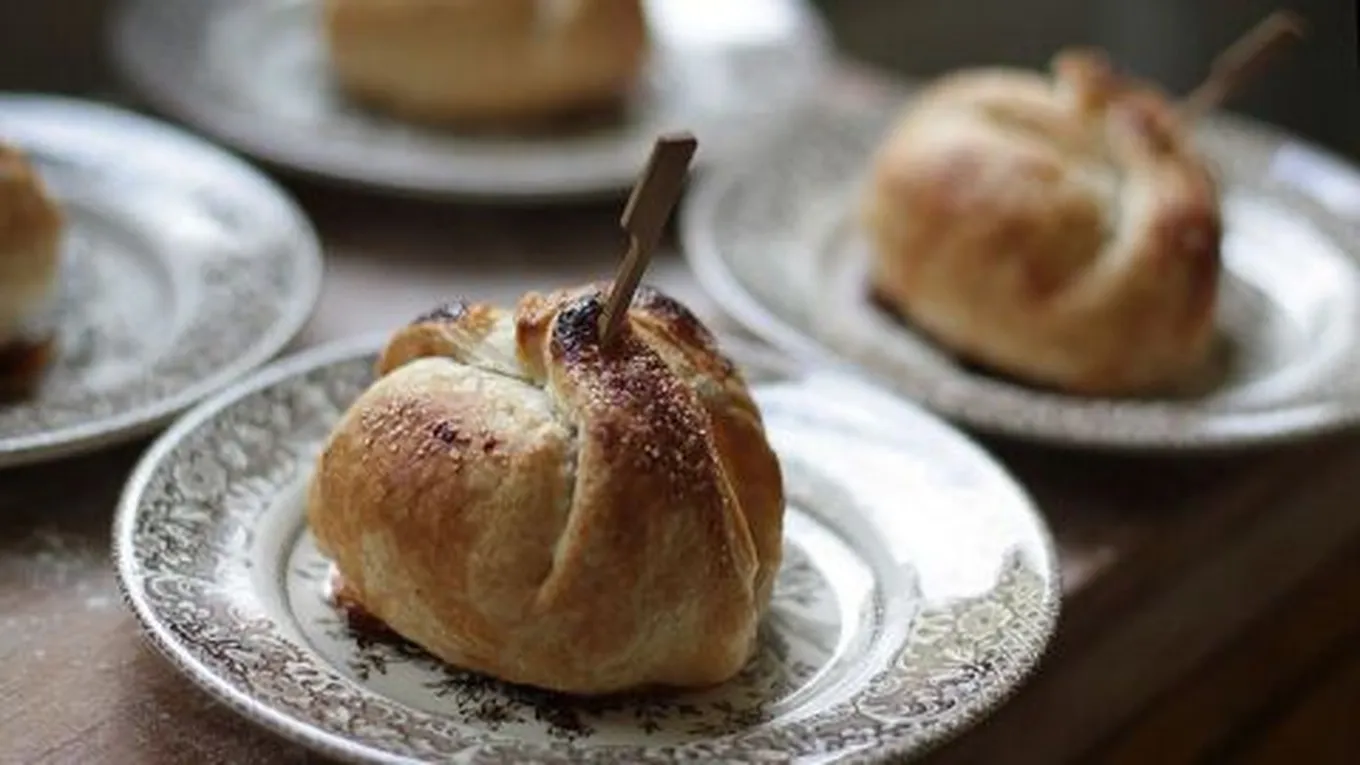 - وضع قطعة من البف باستري على سطح مرشوش بالدقيق مد العجينة قليلاً باستعمال النشابة.