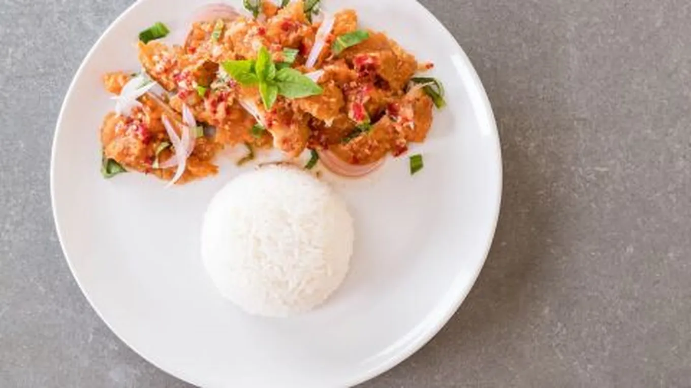 دجاج حار حلو مع الأرز المسلوق