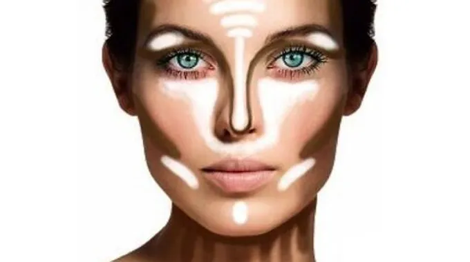 - توزيع كريم الأساس الفاتح على الأماكن التي تتعرض للضوء المباشر لإشعة الشمس، حتى يمنحها الكريم إضاءة واضحة، وهي: