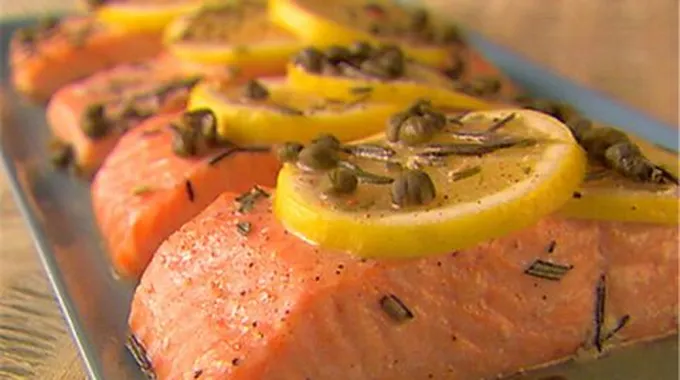 - شريحة من سمك السلمون المشوي داخل الفرن.