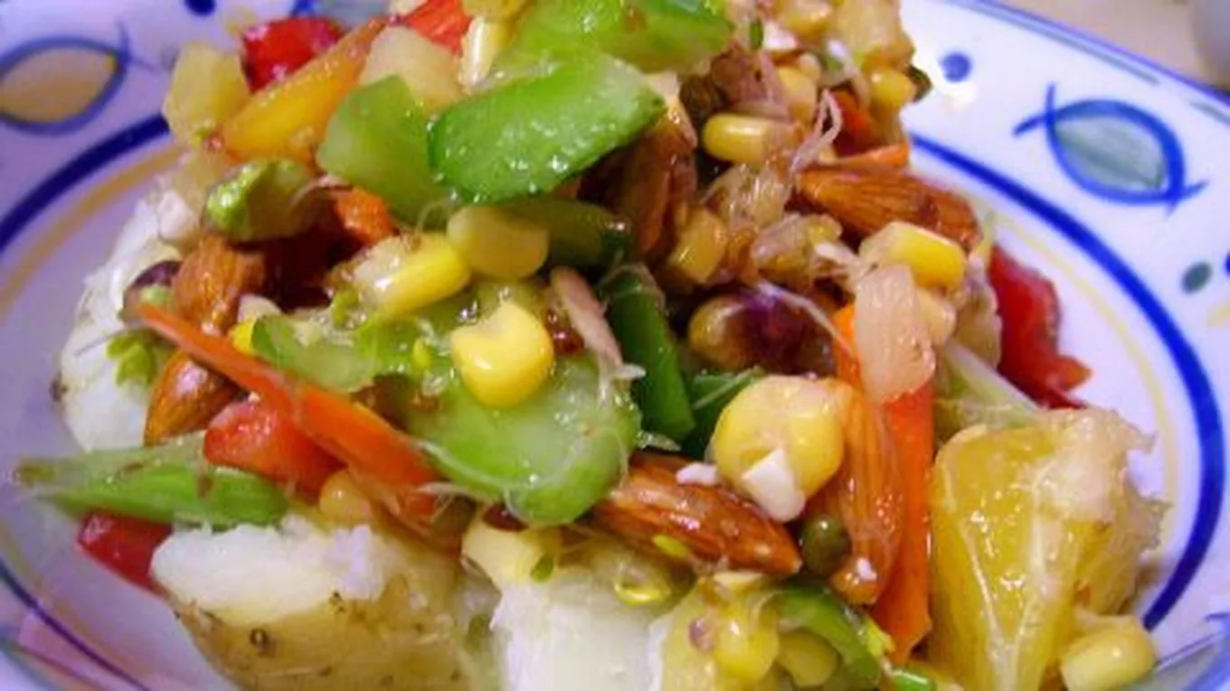 - خلط الذرة مع الجزر والبصل والفلفل الرومي في طبق سلطة.
