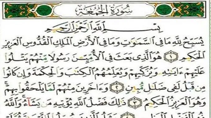 سوف نتطرق في هذا المقال إلى التعريف بسورة من سور القرآن وهي (سورة الجمعة 62/114).