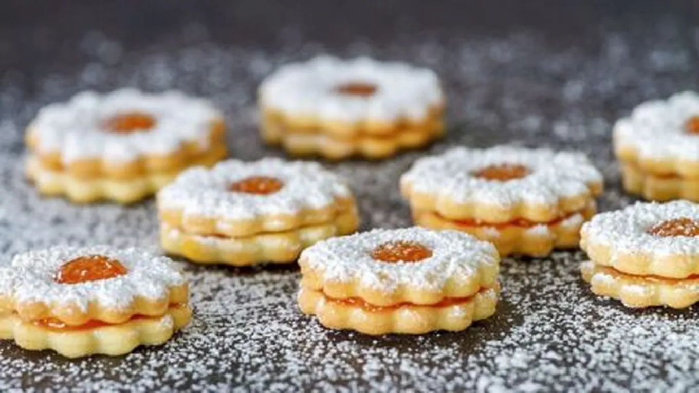 - رش السكر الناعم فوق قطع الكوكيز، ووضع ثلاثة أرباع ملعقة من الجلي فوق كلّ قطعة.