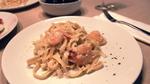 - إضافة القليل من جبنة البارميزان إلى المعكرونة والجمبري ويتم تقليب المكونات جيداً حتى تتجانس بشكل تام.
