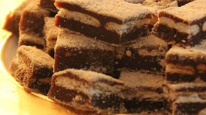 - إخراج الصينية من الفرن بعد مرور الوقت المحدّد، وتركها حتّى تبرد قليلاً، ثمّ تقطيعها إلى مكعّباتٍ متوسّطة الحجم، ويمكن لربّة البيت تقطيعها كما ترغب.