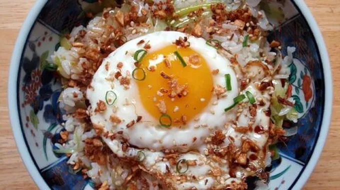 - أرز مقلي بالبيض: نطهو كوباً من الأرز، وفي قدر آخر نسلق مقدار ربع كوب من البازيلاء والجزر، وبعدها نقليها مع بيضة، ونضيف الخليط الناتج إلى الأرز.[3]