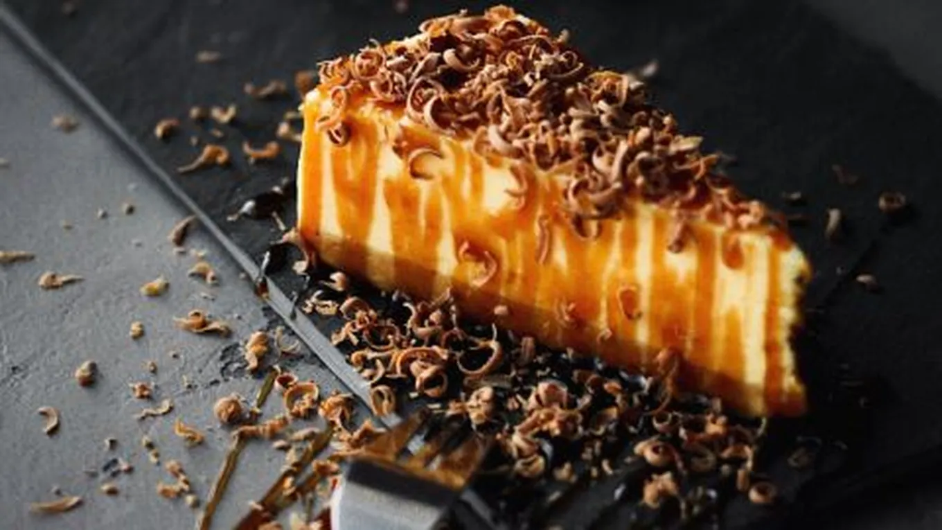 - قلب الكريم كراميل على طبق تقديم فردية وتزينه بالشوكولاتة، وصلصة الكراميل.