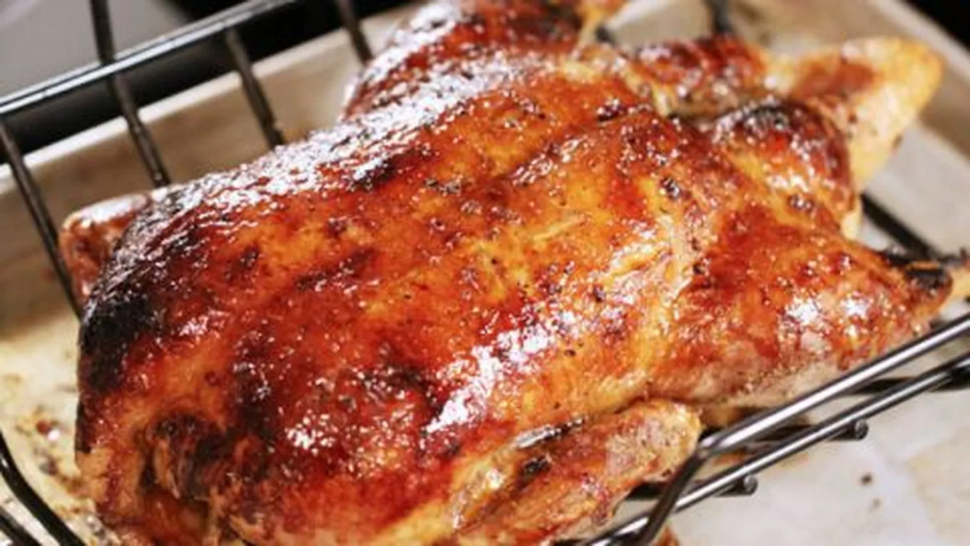 - إزالة البطة وتركها جانباً لتهدأ قليلاً، ثم تقطيعها إلى أربع قطع ووضعها في صينية فرن، وباستخدام الفرشاة وضع عليها باقي صوص التتبيلة.