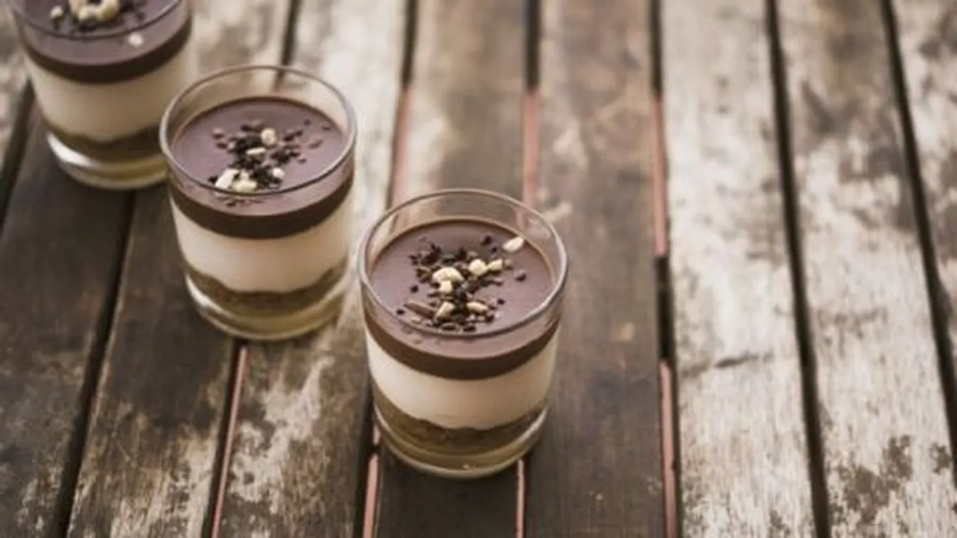 - توزيع كاسترد الشوكولاتة داخل الكاسات، ووضع قطعة من البسكويت على وجه الكاسترد داخل كل كأس، ووضع الكاسترد في الثلاجة لعدة ساعات أو طوال الليل.