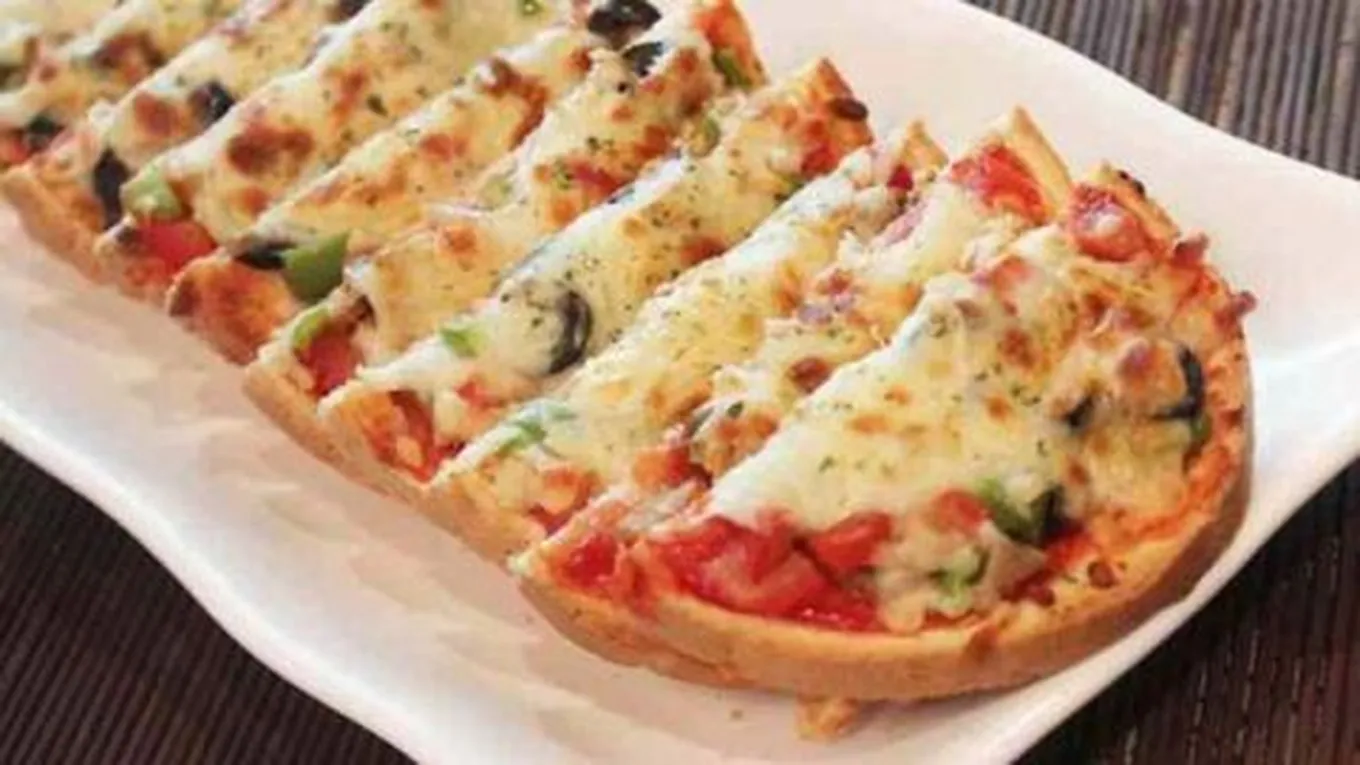 - ندهن قطع خبز التوست بكمية قليلة من صلصة البندورة.