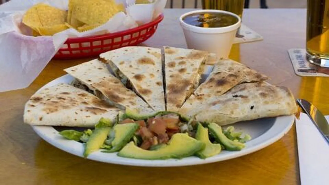 - تقطيع كل فطيرة كاساديا إلى نصفين وتقديمها مع شرائح الأفوكادو.