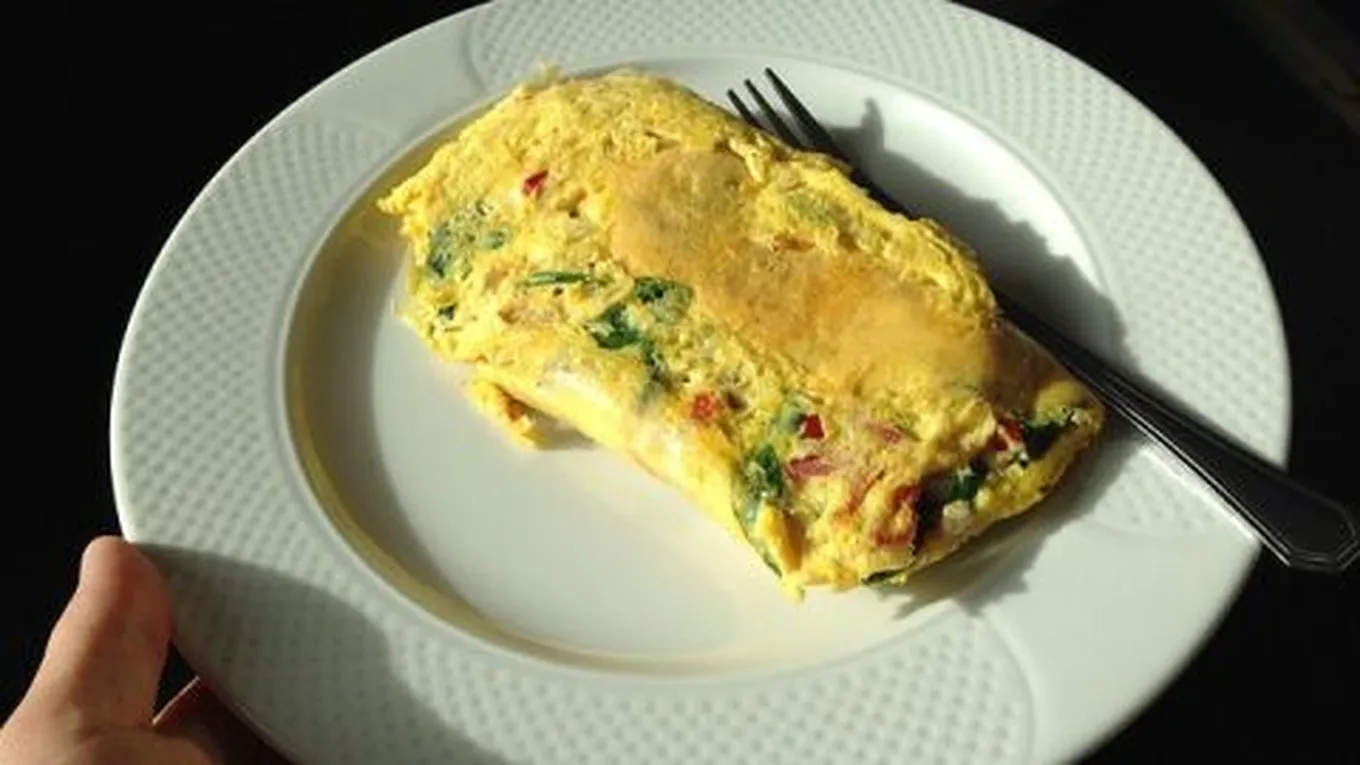 - وضع حبات البيض في وعاء وخفقها جيداً باستخدام شوكة ثم إضافة إلى الوعاء المكونات الخضراء الآتية: البصل، البقدونس والفلفل ثمّ إضافة الملح والفلفل الأسود إلى الخليط.