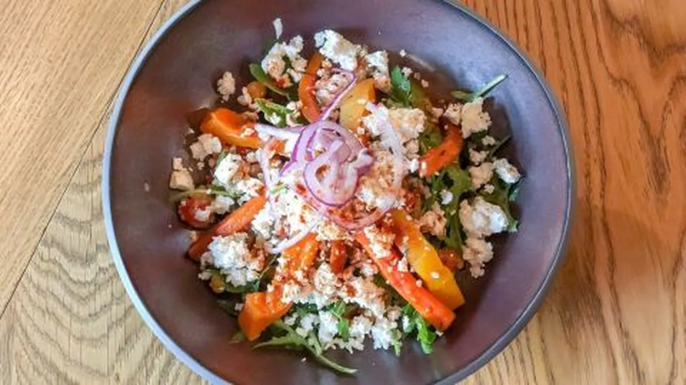 - وضع الخضراوات والكينوا في طبق عميق، ثمّ توزيع الصلصة فوقها.