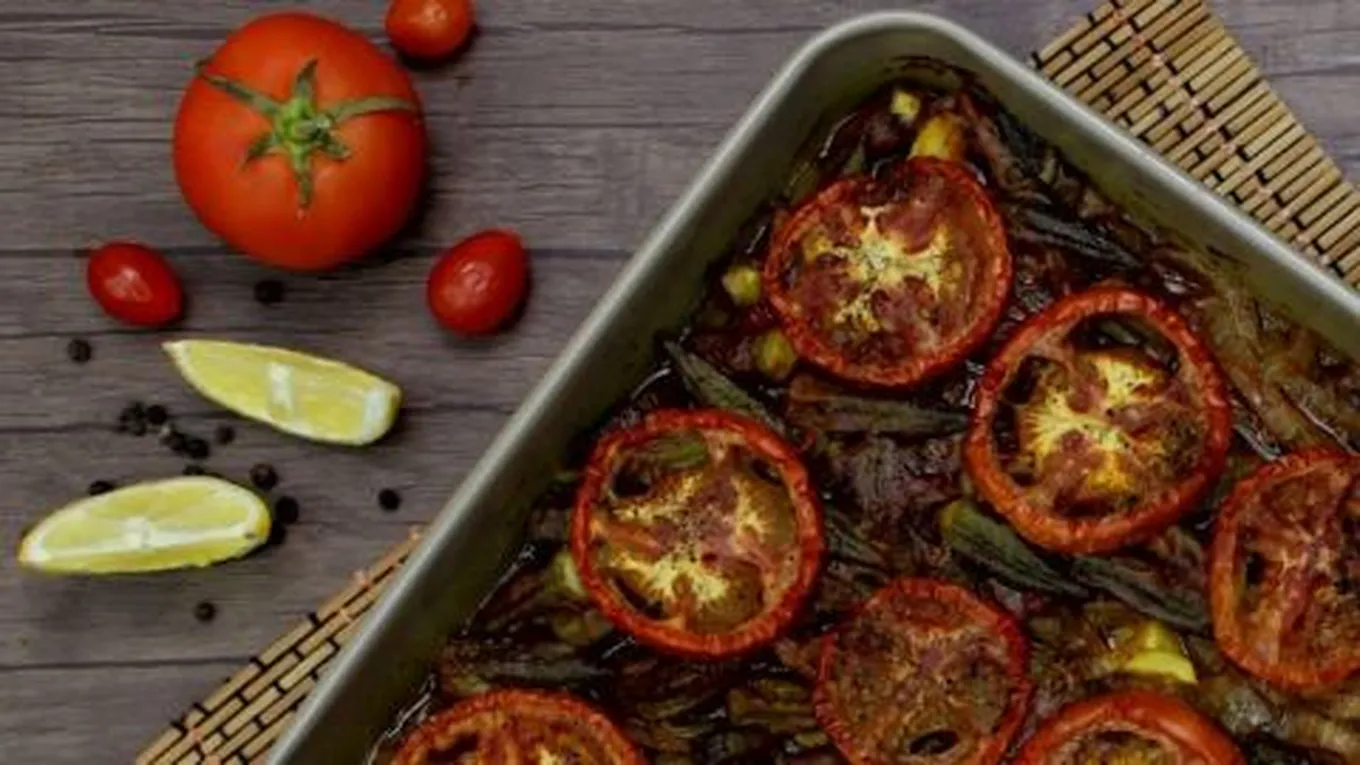 - نُخرج الدجاج من الثلاجة، ثمّ نضع كلاً من البامية، والصلصة، والبهارات، والماء في صينية مخصصة للفرن.