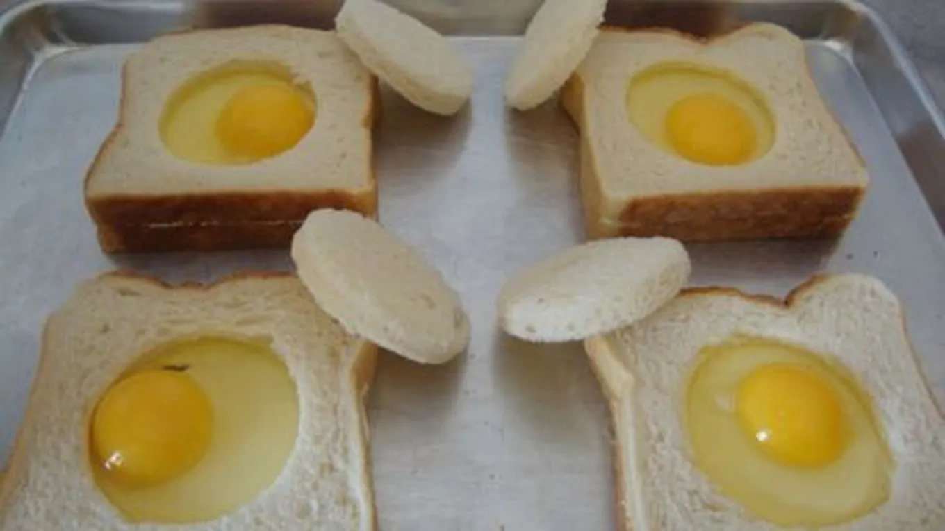 - نقسم البيض، فنضع كلّ بيضة فوق مثلث الخبز، ونُقدّمه.