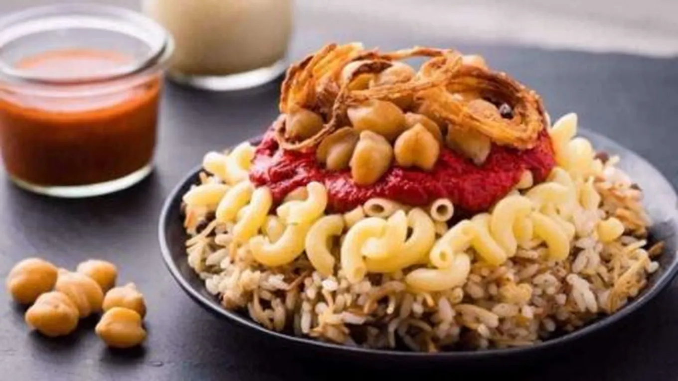 الكشري الأصفر بصلصة البندورة