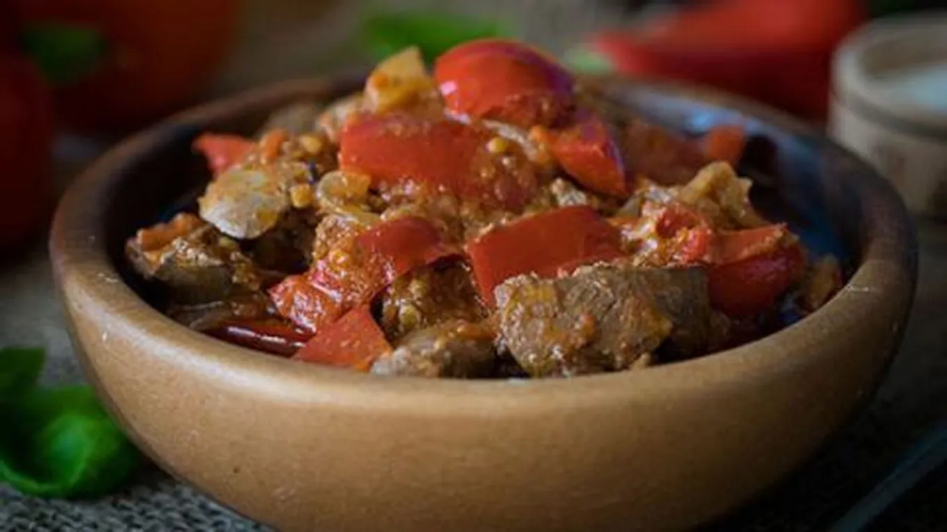 كبد وكلاوي قلب وخصاوي مدة التحضير عشرون دقيقة مدة الطهي ساعة وعشر دقائق عدد الحصص أربعة أشخاص طريقة الطهي تقليب خليط اللحوم على النارالمكوناتقرن من الفلفل