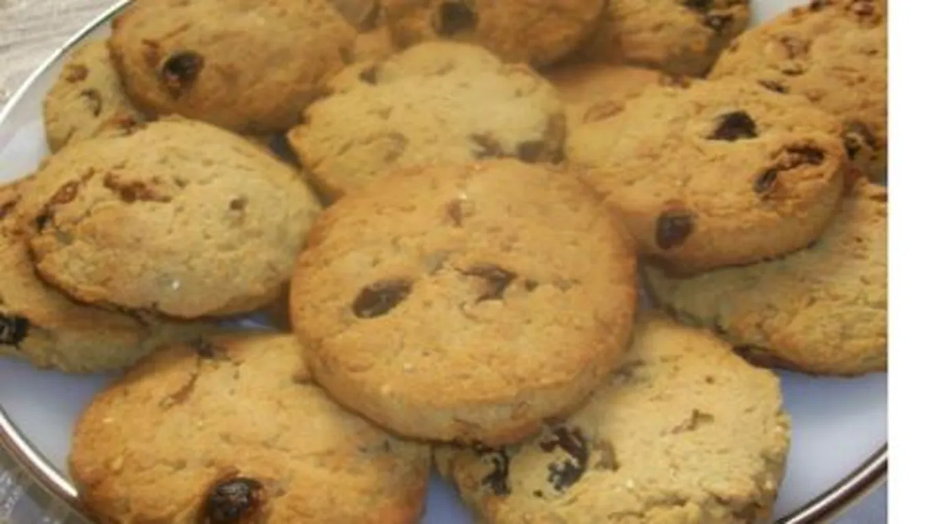 - نخرج الصينية من الفرن ثم نتركها جانباً لتبرد قليلاً، ثم وبواسطة ملعقة معدنية عريضة ننقل البسكويت بلطف حتى لا يتكسر، ونصفّه على طبق التقديم ويقدم.