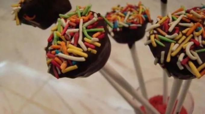- ترك الأعواد جانباً حتى تجفّ الشيكولاتة، وتغمس بعدها في الحلوى الملوّنة لتصبح مزيّنة.