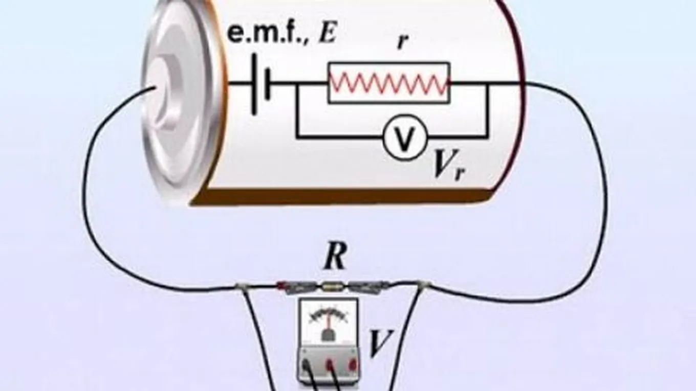 في الحالة المثالية للبطاريّات يكون فرق الجهد بين طرفي البطارية مساوياً لمقدار القوة الدافعة الكهربائية للبطارية، ولكن للأسف الحالة المثالية غير موجودة فعليّاً، ففي أرض الواقع يوجد مقاومة داخلية للبطارية وسبب هذه المقاومة هو أن البطارية مصنوعة من مادةٍ ما، ولكل مادةٍ مقاومة تعتمد على درجة حرارة المادة ونوعها. وعادةً ما يرمز للمقاومة الداخلية (بالإنجليزية: Internal Resistance) بالرمز r.[1]