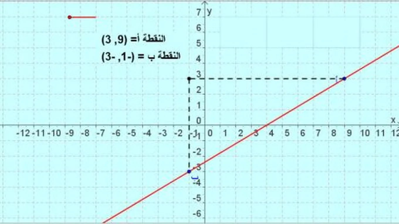- اعتبار النقطتين (8,15) و (7,10) نقطتان تمران بالمستقيم.