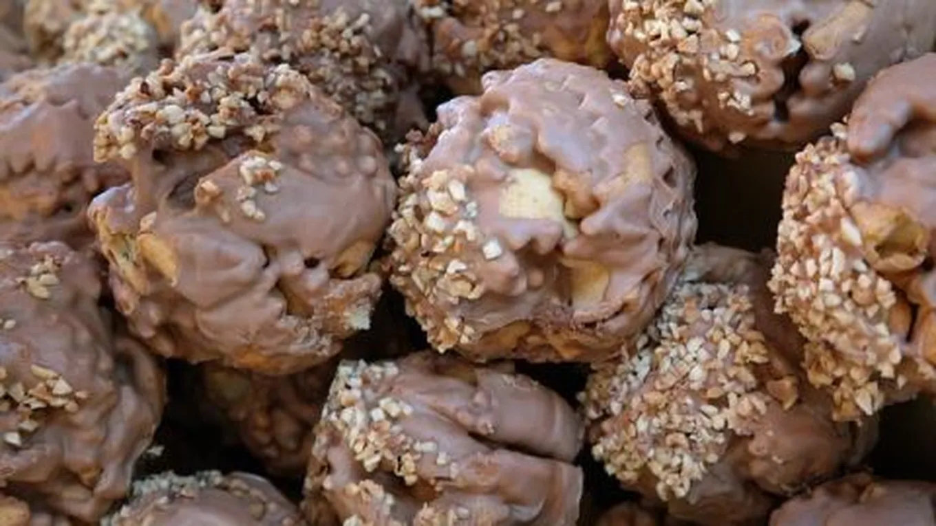 - تشكيل الكرات، وغمسها فى الشوكولاتة المذابة، ورشّ رشة ملح بحري على كلّ القطع.