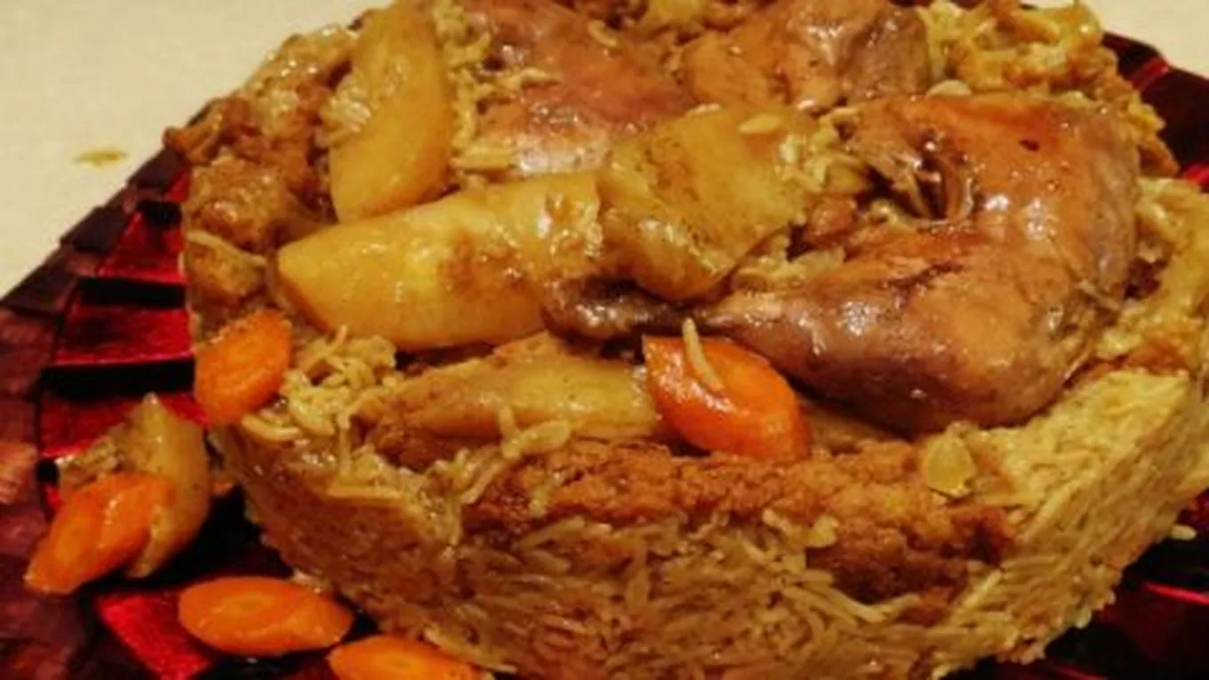 - تصفيةُ الأرزّ من الماء، وإضافته فوقَ الدجاج، حتّى يتغطّى بالأرزّ بشكلٍ كاملٍ.