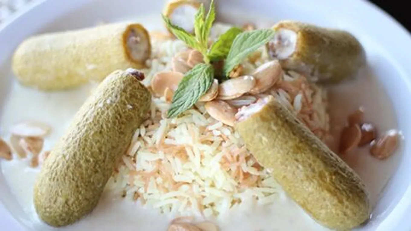 - رفع الأرز بالشعيريّة عن النار ووضعه في صحن للتقديم، وتقديمه بجانب المخشي باللبن.