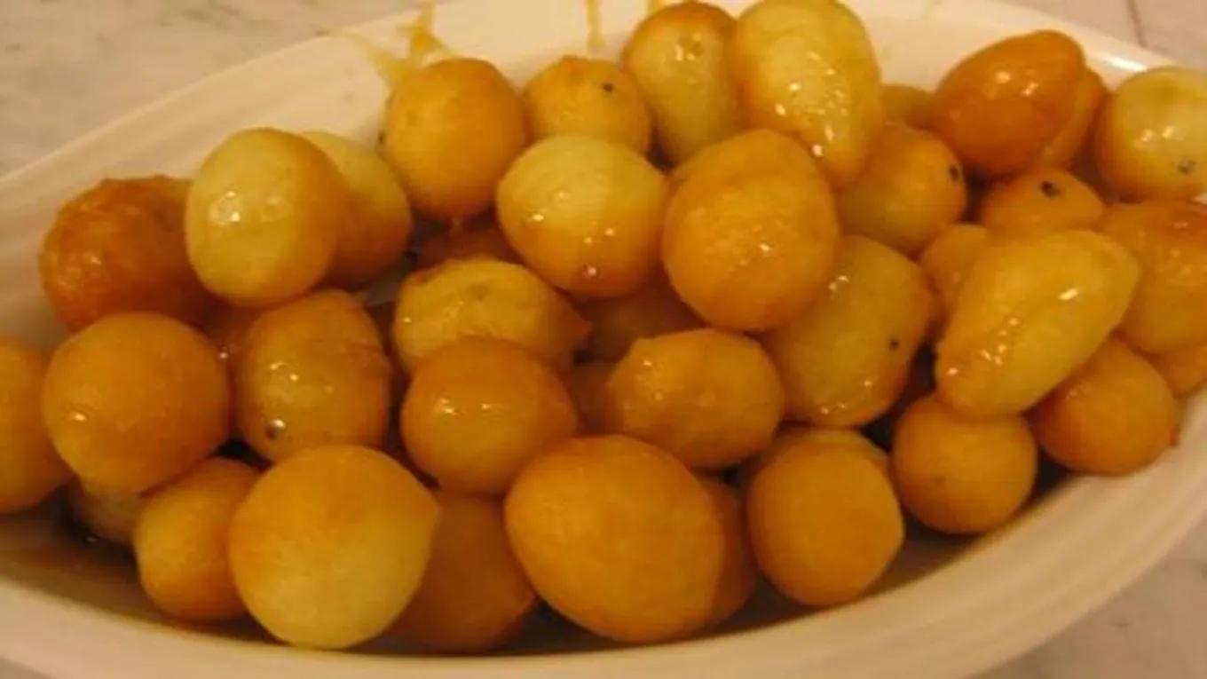 - بعد تصفية اللقيمات من الزيت، توضع في القطر، ومن ثم تصفى لتزيينها بالفستق أو الجوز حسب الرغبة.
