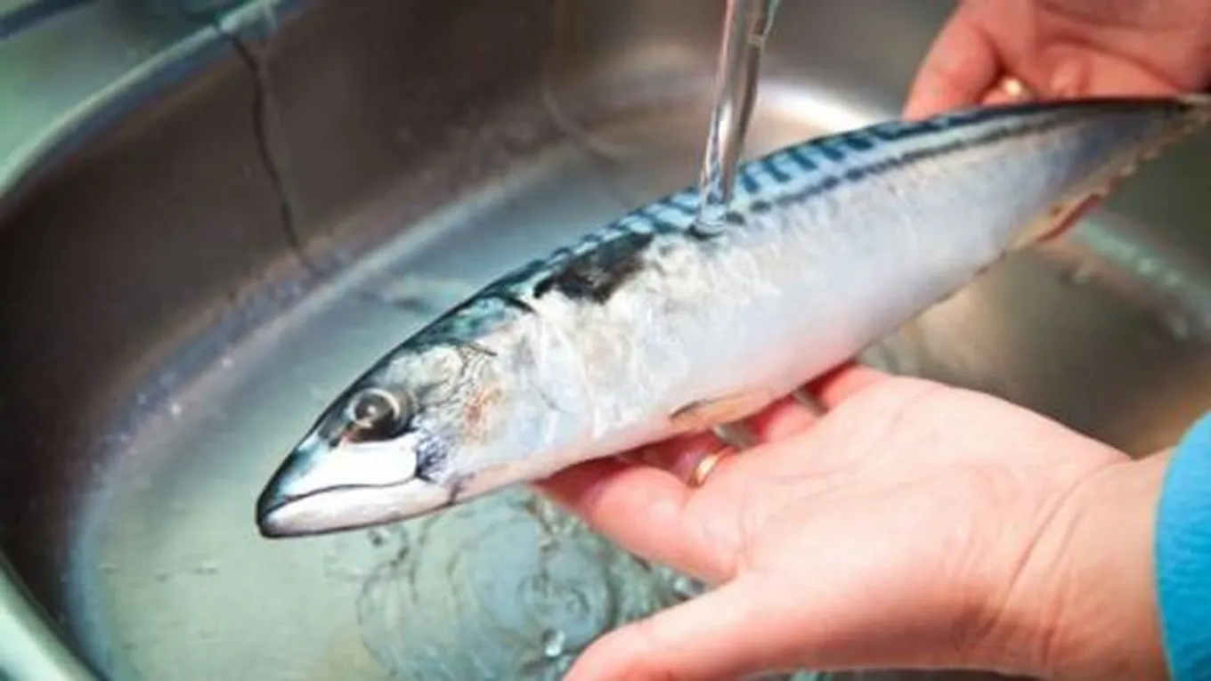 - ارتداء القفازات قبل البدء بالتنظيف، ثم توضع الأسماك في وعاء بلاستيكي وتُغسل جيّداً من الخارج بالماء.