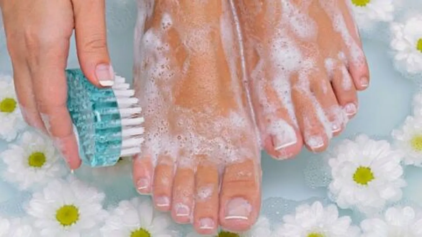 - بعد ذلك تفرك القدمين بلطفٍ باستخدام فرشاة ناعمة الشعيرات.