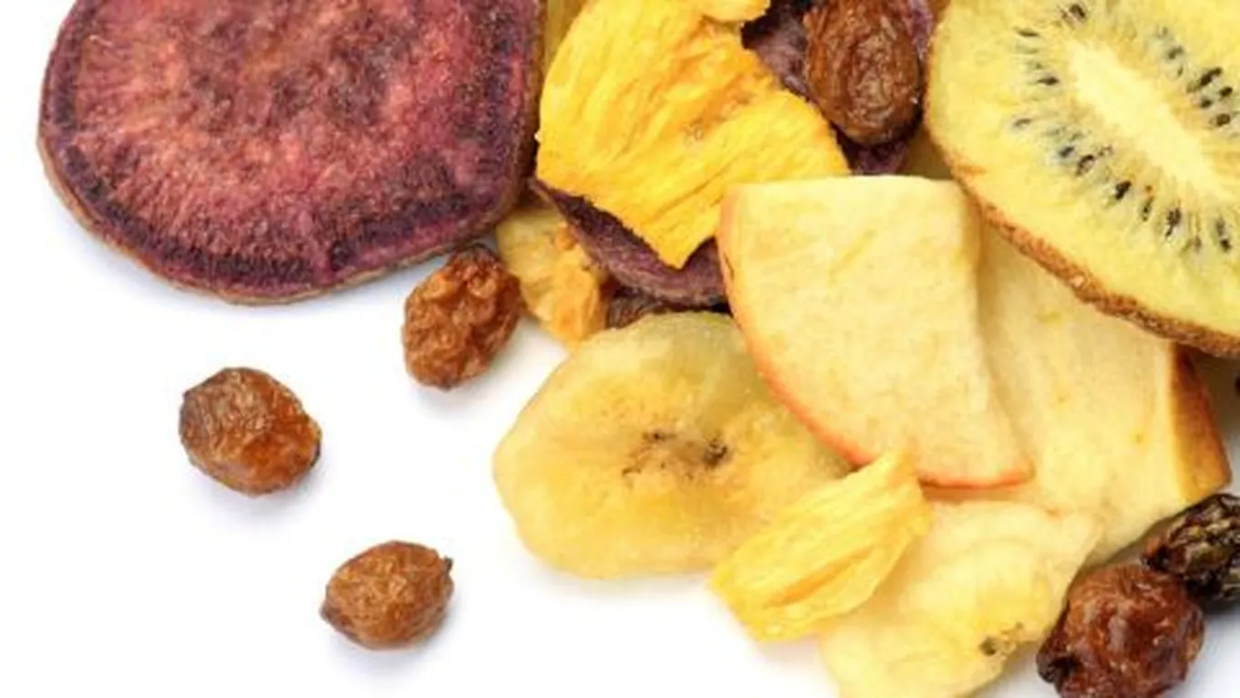 الفواكه المجففةتنتج الفواكه المجففة عن طريق استخراج غالبية المحتوى المائي من الفاكهة مع المحافظة قدر الإمكان على قيمتها الغذائية وطعمها اللذيذ، بحيث تتقلص