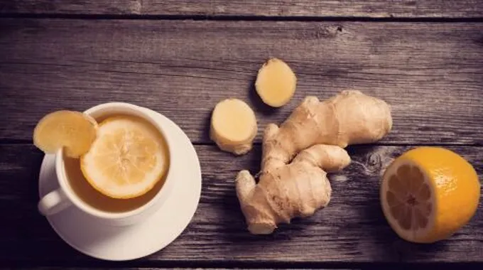 - نُنظّف ونُقطّع كلّاً من جذر الزنجبيل والليمون إلى شرائح رفيعة.